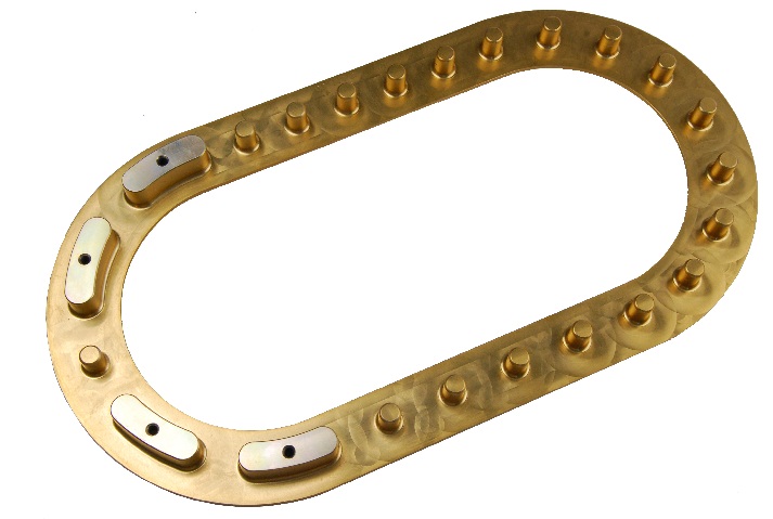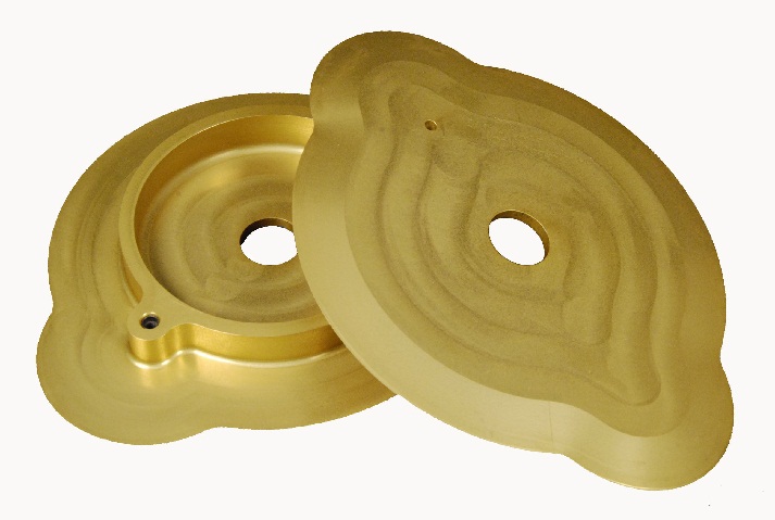 An oblique internal cone blends with a angled mating feature to make an impossible circular projection in this component, leaving no undercuts. Components in Aluminium 2024-T3511-Air Norm 9048/9049.